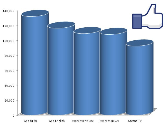 Express News’ Twitter account has 13,509 followers with a Klout of 46, while The Express Tribune account has 20,016 followers with a Klout of 64.