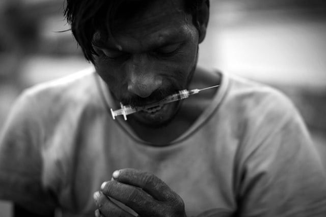 Looking around the room, there was just the study desk, bed and his family portrait in the broken frame in his apartment - the only things that remained after selling everything to keep the high going. Tightening the band around his arm, he tapped the needle on the syringe and looked at the smiling faces of the portrait again. He said, in a withered whisper: