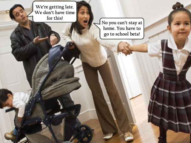 Our children were used to spending time with Dada, Dadi, Chacha, Chachi and my three nephews, but now they spend their day at a day care facility followed by an hour at my office before reaching home. Bored, hungry and frustrated, both lodge their protests with high pitched cries. The children, deprived of attention, affection and interaction, have become increasingly demanding.