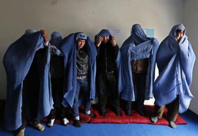 Male Afghan women’s rights activists wearing burqas hold up a banner to show solidarity to Afghan women ahead of International Women’s Day in Kabul March 5, 2015. Photo: ReutersOf course, my initial reaction to the news was that of shock and disbelief, which then quickly suffused to glee and wonder. And I suddenly heard myself saying the words I have been waiting to hear myself say for a while,
