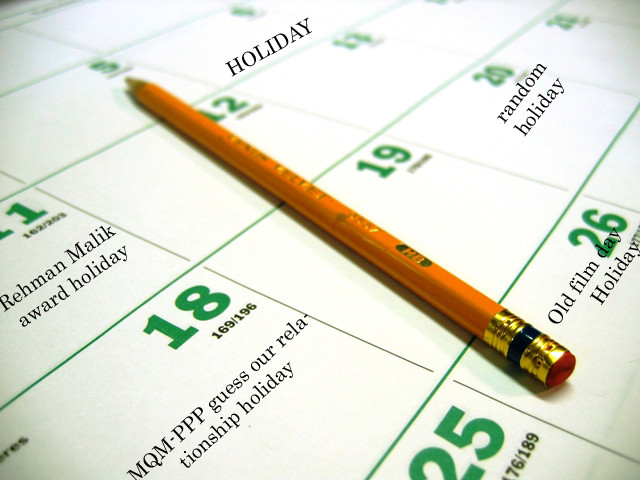 In fact, if anything, we need more holidays. We need to acknowledge the important things happening in Pakistan and show our appreciation by declaring those days off. With that in mind, I put forward dates that we must immediately put into our national calendars (no, not those type of dates you Burger bacha):