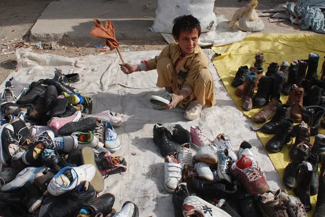"My name is Ahmed, and I live in the slums near the Islamic University. It has been two years since we moved there. I have never been to school and have no intentions of ever going - I am very smart and happy the way I am. I have two younger brothers. My baba is a push-cart vendor while my mother stays home and cooks food for us. My other brothers work with my father and I work alone here."