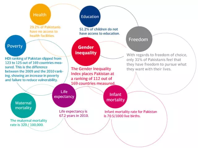 In terms of gender inequality, Pakistan scored 112 among 139 countries. On account of level of satisfaction with freedom of choice, three out of 10 people in Pakistan are satisfied while only four out of ten women are satisfied. In terms of human rights violation, Pakistan was just one point below the countries with the worst human rights record. It scored four out of five (one being the least human rights violations). One out of ten people reported that they had faced a situation involving bribes, while only 15 per cent voice their opinion before public officials.