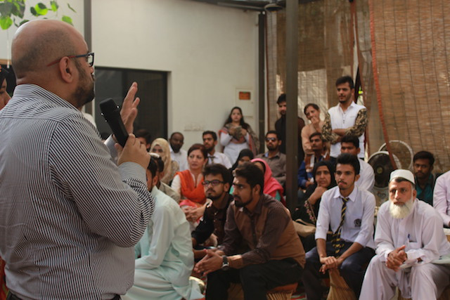 Salman Elahi speaks during the event PHOTO: NOWPDPSalman Elahi began the talk by discussing the challenges he had to face because of being visually impaired and how it has gotten him where he is.