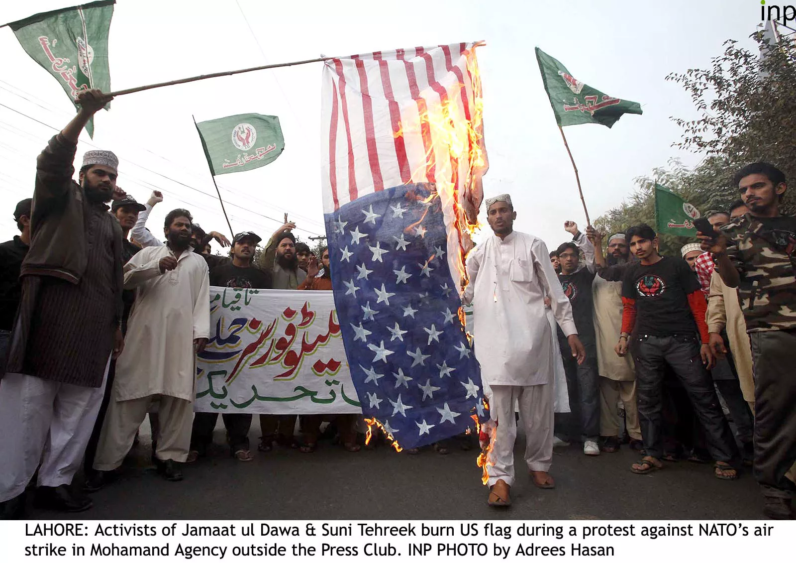 Addressing the rally, JD leaders urged the young protestors to prepare for jihad and urged the Pakistan Army to give a “befitting response” to the “NATO aggression”.