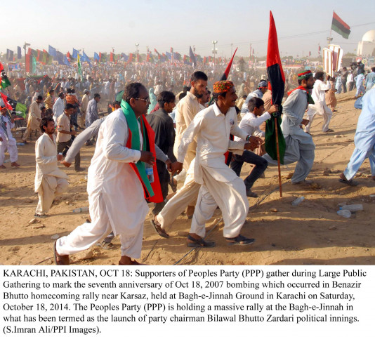 The participants comprised people of all ethnic groups. The rally, which was the PPP’s first major public show-of-strength after the grand rally on October 18, 2007, reminded the participants of Benazir Bhutto’s legacy. “Look at the people and feel their craze for the Bhuttos,” said Farooque Shah, showing the seven-year-old wound on his chest that he had received in the last rally. “I am still ready to sacrifice my life for Bilawal. Our life is for the Bhuttos.”