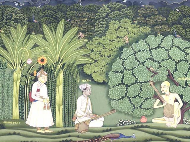 “Nay Lord,” said Tan Sen, “For I speak of my venerable teacher, Haridas Swami, who has now retired from worldly life and lives a humble existence in his hut by the forest. And since he is a darvesh, he answers to no king, but only to the highest of authority. And those who wish to hear him, must go to him!”