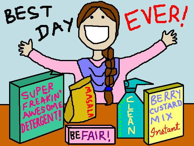 Now that we are talking about this detergent, might I add that the Pakistani woman’s biggest problem is not being able to get that saalan ka daagh (curry stain) out of her husband’s dress shirt? When her husband's honour is stained along with his shirt and he raises that you-are-so-dead eyebrow, she will be reminded of her place! Her son’s academic report card can wait; but the ‘minus five’ on his cleanliness report have the ability to quake the earth under her feet.