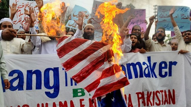 Emotive, unethical (using the images of random children) and extremely successful, the above image calling for burning US and Israeli embassies/consulates is making the rounds on Facebook. I could stop now, but there is a lot more going on in this community. One of the images above was shared from Jaan qurban sipah e sahaba dera ismail khan (Life sacrifice Sipah-e-Sahaba Dera Ismail Khan). I'm intrigued to find such a localised online community for a banned outfit. Yes they have the basic curses for the film maker: