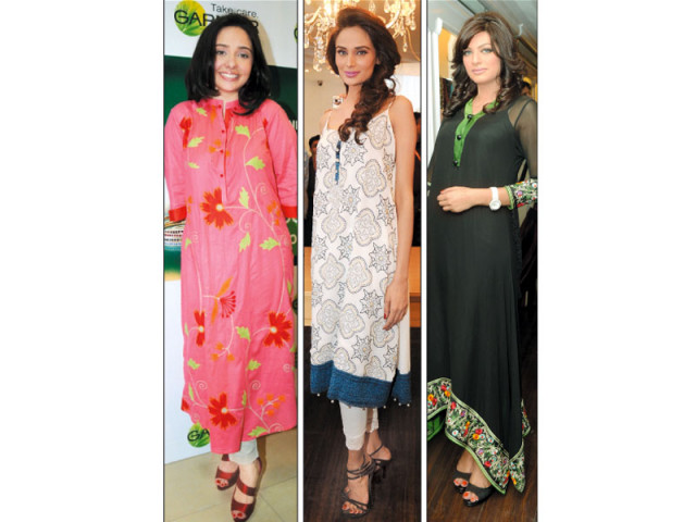 The Guru: Model-turned-entrepreneur Mehreen Syed makes the perfect poster child for a cool sublime summer. In a virgin white and royal blue geometric pattern kameez that adheres to the upcoming trend of a higher hemline, she looks classic without a make-up or accessories overkill. Good job, MS!