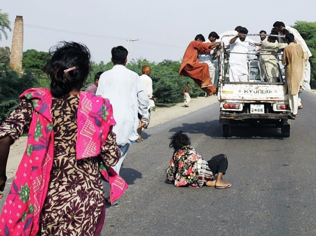 After crossing Dhabeji, I witnessed the flood ravaged people camping on both sides of the road waving their hands at the cars passing by. according to the advice that we had been given stopping would be risky. It is better to provide relief goods with proper management rather than inviting a big crowd that may start looting in sheer desperation. There were some obvious local people disguised as IDPs. It reminded me of what Khaled Hosseini wrote in his book The Kite Runner: