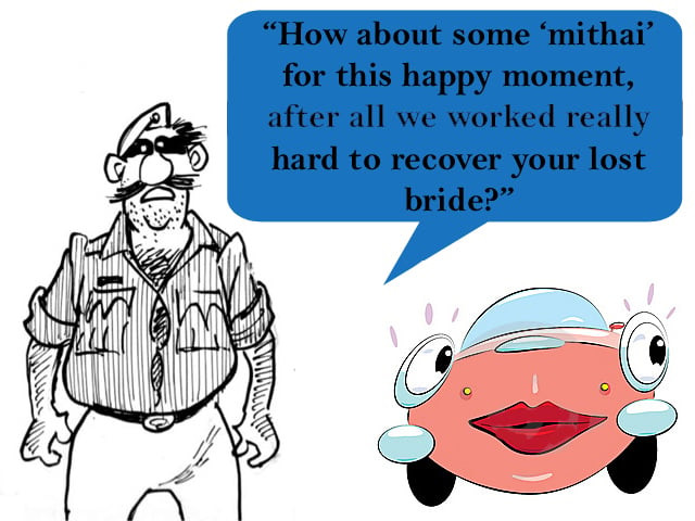 “How about some ‘mithai’ for this happy moment, after all we worked really hard to recover your lost bride?” said the inspector with a smirk on his face.