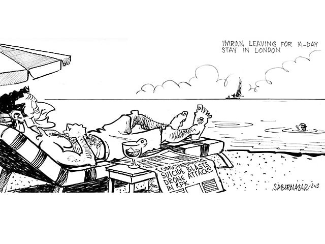 Can it get any more evil than asking our cartoonist Sabir Nazar to target an injured man, when all he wants to do is go see his children in the UK during the few weeks they get off from school? Who cares if there is wall-chalking up in NA-56 demanding to know where the man they elected is?