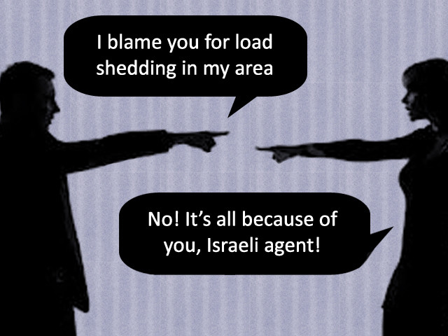 We need to realise that WE are the cause of OUR problems. We need to correct ourselves, not just by words and notes but by action. We need to stop believing in irrational conspiracy theories and start realising that our own political parties are backstabbing us. We need to stop blaming other countries and admit that we have legitimate problems in our country, such as terrorism, poverty and gender discrimination. We cannot overcome our problems till we do not admit that they exist, just like we cannot cure an illness until we do not admit that we have it.