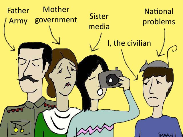 I was the civilian. I toiled hard and rarely confronted the army, government or judiciary. The government was kind and worried about me, but complained the army was lethargic and arrogant. The media and judiciary said they cared, but derived much amusement from my plights.