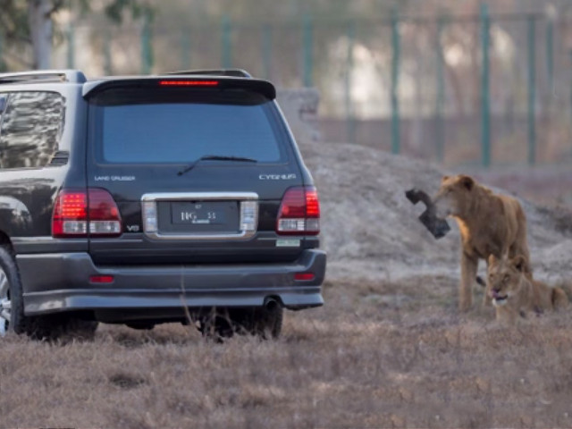 These big strong men in their big bad SUV (NG-8) must have noticed that no one is cowering before them in the neighbouring sedans and coupes, so they went and put on a show to establish their class. Long story short, the young men drove off the path in the safari park and towards a group of lion cubs.