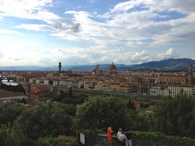 Piazza del Duomo, the largest standing dome, is worth admiring from inside. If you don’t want to spend extra to go on top – which is not advised if you’re claustrophobic – you may skip that. But, if you truly wish to admire the dome, take a bus or taxi ride up Piazzale Michelangelo for the panoramic view of Florence.