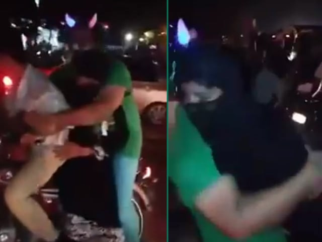 In the said video, while on a crowded street at night, a vile young man drabbed in Pakistani national colours, evidently celebrating August 14th, sexually harasses a burqa clad woman. As his friend watches with a devilish grin wide enough to let an airplane in, he attacks a lady sitting on a bike by grabbing her from behind, gyrating against her, and then continuing the abuse for a several more uncomfortable seconds.