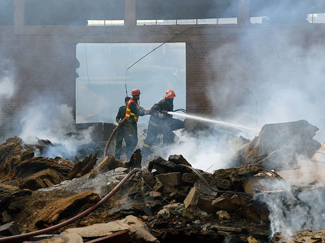 Without any further enquiry and without any regard for due process, a growing mob set out to serve justice. With 200 workers normally on site, the factory was pelted with rocks and then set ablaze.