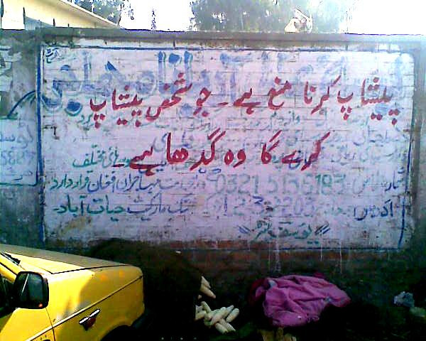 These warnings are painted on many walls in Karachi. The only option people have is to accept the compliments written on the walls and keep on going. According to UNICEF,