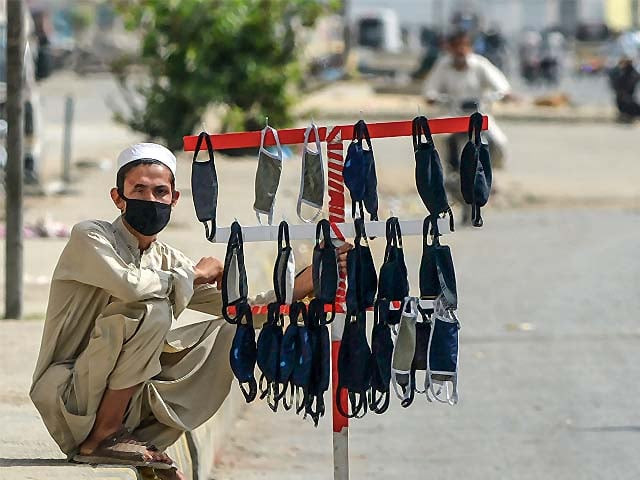 A vendor waits for customers as he sells face-masks along a street. PHOTO: GETTY