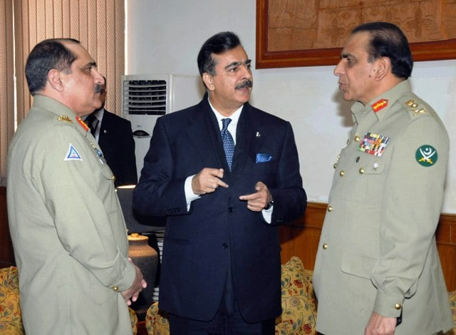 A photograph circulated by the Press Information Department across newsrooms recently had Yousaf Raza Gilani standing in the middle, chatting with General Ashfaq Parvez Kayani and General Khalid Shameem Wynne, with his fingers stationed uncomfortably near his chest — a pose we normally won’t stand in. But then again he is the prime minister.