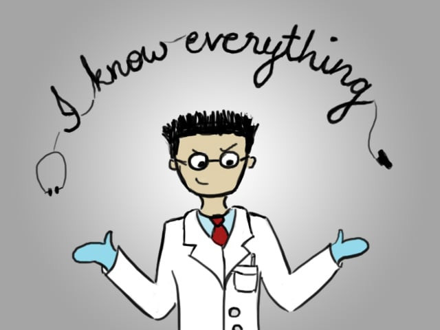 It seems as though several doctors in Pakistan are on a strange sort of egotistical trip. Their prevailing attitude is “question me not for I am the all-knowing, all wise.” The minute you let on that you might be able to understand what they’re doing and why (thanks to the Anatomy classes you took in college), they will condescendingly reply: