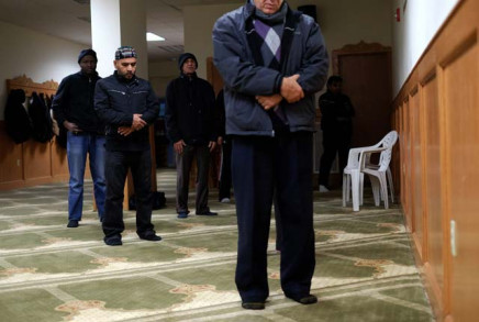 Muslim men pray at a mosque in Jersey City, New Jersey, on December 7, 2015. Muslim American leaders accused Republican Presidential hopeful Donald Trump of incitement for demanding a "complete shutdown" of Muslims entering the US after a New York shopkeeper was beaten in an alleged hate crime. Trump's stunning statement followed last week's mass shooting in California by a Muslim couple believed to have been radicalized by extremists, and landed with a thunderclap just as fellow presidential candidates were contemplating ways to improve national security. PHOTO: AFP