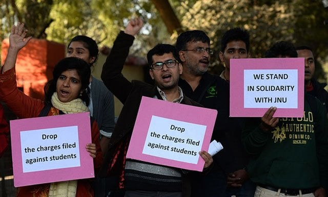 Police have also registered sedition cases against another five students who they say attended the rally, but have been unable to track them down.
