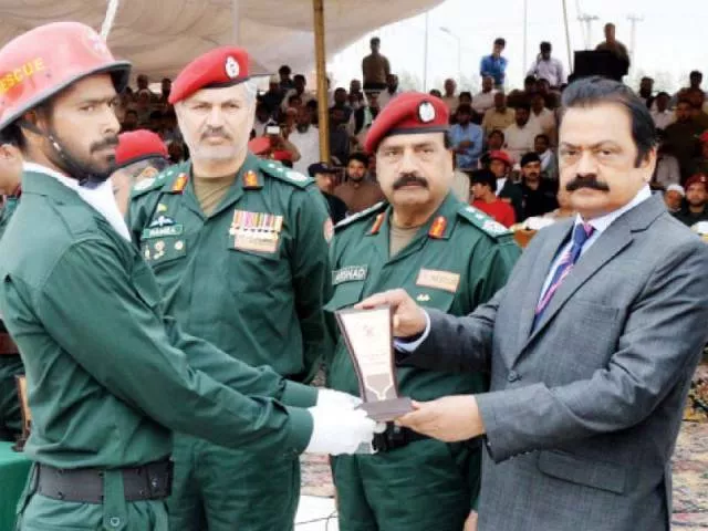 In his address, minister Sanaullah Khan called rescuers brave sons of the soil who risked their own lives to save those of others.