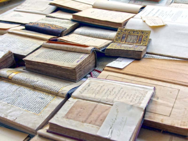 A total of 35 texts including rare books, manuscripts, documents and historical maps preserved at University of Karachi were put on display. PHOTO: AYSHA SALEEM/EXPRESS