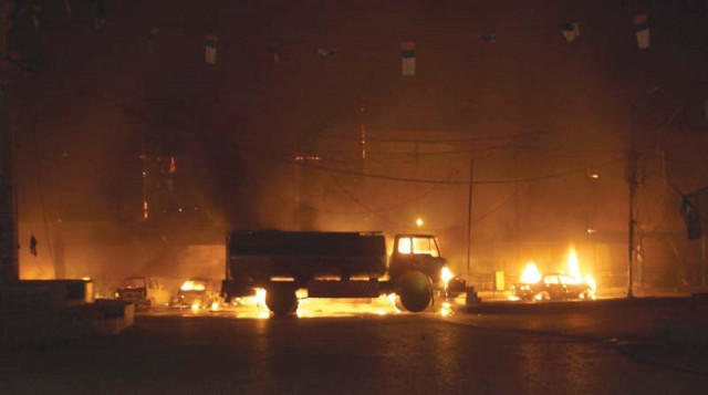 An oil tanker was offloading fuel when the fire broke out. PHOTO: ADEEL AHMED/EXPRESS