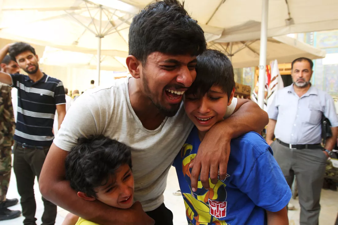 Mourners react during a funeral of a victim who was killed in a suicide car bomb in the Karrada shopping area in Baghdad, during the funeral in Najaf, south of Baghdad, Iraq, July 3, 2016. PHOTO: REUTERS