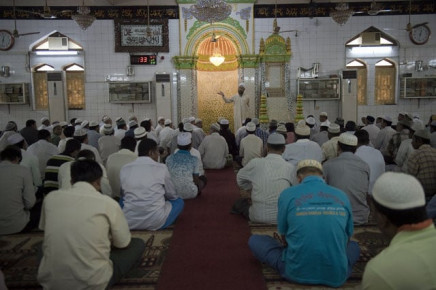 Myanmar Muslim worshipers listen to a speaker at a mosque in Yangon on November 6, 2015. PHOTO: AFP