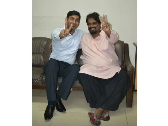 Pakistan embassy official meets Zulfiqar Ali in Indonesia. PHOTO: EXPRESS/KAMRAN YOUSAF