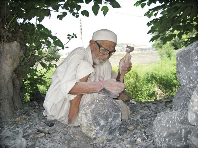 He also explained artisans of Panj Katha area of Khanpur and neighbouring Taxila city inherited this art from their forefathers and actively passed it on to their next generations. He believes it is a great service on their part to keep the art alive. However, it is sad that these skilled artisans are not aware of precautionary measures they should take while chiseling stone. Flying splinters often cause injuries and the dust inhaled during the process does permanent damage to their lungs.