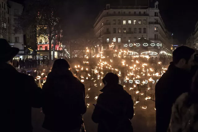 Members of the public gather for the lighting of a candle display on December 8, 2015 in Lyon, in tribute to victims of the November 13 Paris terrorist attacks, and as a replacement for the cancelled annual Festival of Lights, a secular version of a religious tradition devoted to the Virgin Mary and dating back to 153 years ago. PHOTO: AFP