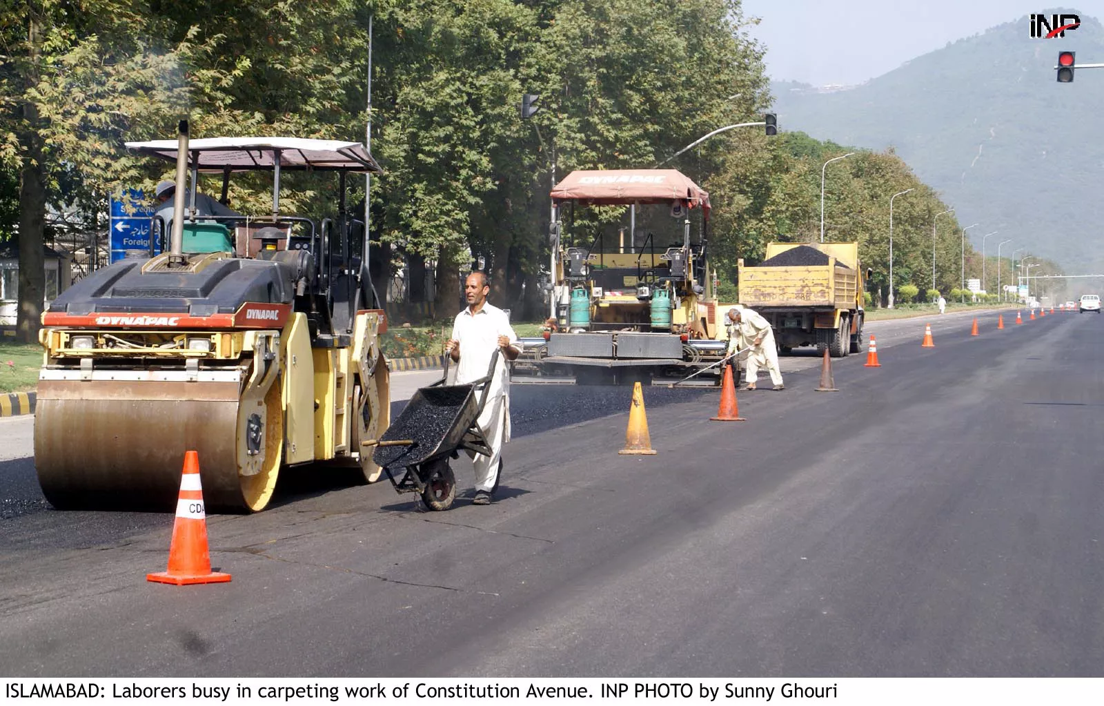 Islamabad Mayor and Chairman Capital Development Authority Sheikh Anser Aziz paid on Saturday a surprise visit to Constitution Avenue which is being recarpeted. Reviewing the work, Aziz directed the concerned officers to strictly ensure quality of work and complete carpeting of the 10 kilometer (5km each side) long Constitution Avenue within the given time frame. He said funds saved from the project would be utilised to repair roads in other areas of the city. In this regard, he said that the Islamabad Metropolitan Corporation will revive the directorate for Machinery Pool Organisation (MPO) to carryout road carpeting work in the city. While briefing the mayor on the carpeting work, Director MPO said that work on Constitution Avenue started on October 6, 2016, and is expected to be completed by November 15, 2016.