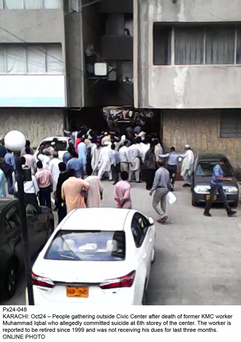 At around 8am on Monday, Iqbal left his house for the Civic Center building on University Road to inquire about the status of his pension from the Karachi Metropolitan Corporation (KMC), which has been pending for three years.