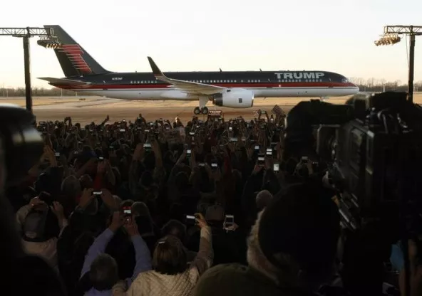 Photo showing President Trump's aircraft arrive for a rally during the campaign trail for Presidential elections. PHOTO: REUTERS
