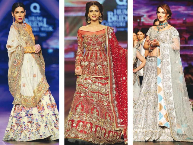 Fayeza Ansari, Saba Qamar and Nadia Hussain walked the ramp on day two of Bridal Couture Week. PHOTOS: PUBLICITY