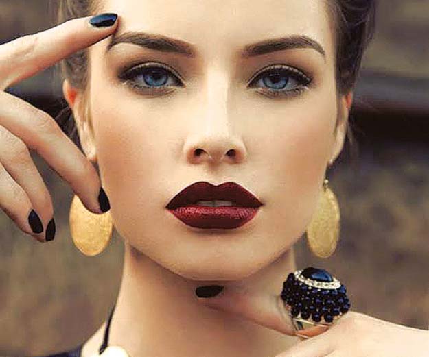 Drawing attention to the lips always makes the face look more harmonious. Dark lips are all the rage this season; celebrities and make-up artists around the world have been seen wearing burgundy, maroon, black and navy lipstick. Enjoy experimenting this winter!