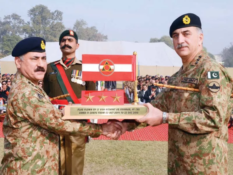 Corps Commander Peshawar Lt Gen Hidayatur Rehman handed over 11 Corps Command to the newly posted Lt Gen Nazir Ahmed Butt at a special ceremony held at the Corps Headquarters on Thursday, security sources told APP. The outgoing Lt. General Hidayat Ur Rehman would assume his new responsibilities as Inspector General Training and Evaluation at the GHQ. Lt Gen Nazir Ahmed Butt, who is from 67th PMA Long Course, prior to his new assignment, was President National Defence University Islamabad. General Butt had also commanded a division in South Waziristan as Major General. Meanwhile, the outgoing Inspector General Frontier Corps Balochistan Lt Gen Sher Afgun handed the charge of the command to the incoming Major General Nadeem Anjum in Quetta on Thursday. A ceremony was held at the FC headquarter in which Major General Sher Afgun gave a farewell speech. (With additional input from our correspondent)