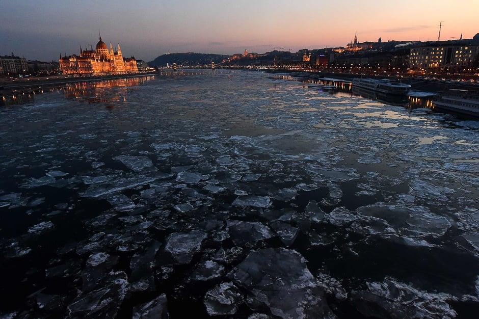 Ice floes float in the water of the River Danube nearby the parliament building (L) of Budapest. PHOTO: AFP