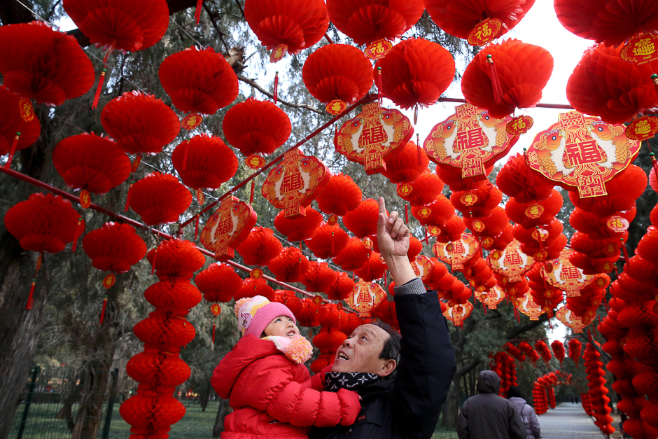 Chinese people visit a lantern display for the upcoming Lunar New Year at a park in Beijing. PHOTO: AFP