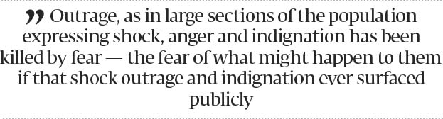 The crocodile tears of a senior member of the government should fool nobody — but they will fool and satisfy many, particularly those that seek to drag the state ever further to the right and closer to a poisonous intolerance in thought, word and deed. They are powerful and have fellow-travelers deep within State apparatus. Much of what emanates from the government about the protection of minorities and the right to protest and a host of other issues relating to the freedom of the individual are mere window dressing, and mostly designed for foreign consumption. We remain truly and vehemently outraged — a small voice amid the braying rabble.