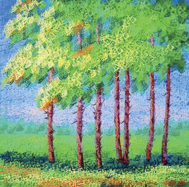 Ibrahim told The Express Tribune that he took inspiration from nature surrounding him and built on his calligraphic landscapes with layers of overlapping Arabic text taken from the Holy Quran. “I keep on drawing the layers with infinite colour palette we see in nature as seasons begin to change,” he explained.