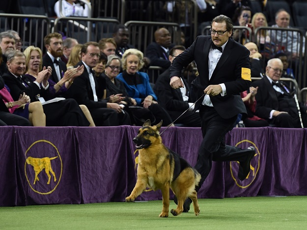 Rumor, a German shepherd, and Kent Boyles his handler run around the ring during judging before winning "Best in Show" at the Westminster Kennel Club 141st Annual Dog Show at Madison Square Garden in New York February 14, 2017. PHOTO: AFPSitting out of the ring didn't sit well with Rumor, who watched her housemates travel to shows. "She hated it at first, she'd go nuts" he said. "She was barking and carrying on."