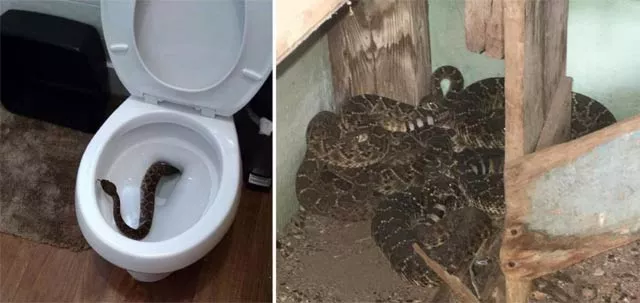 According to the company, the snake in the toilet found its way in from an opening in a relief pipe. PHOTO: FACEBOOK @Big Country Snake Removal