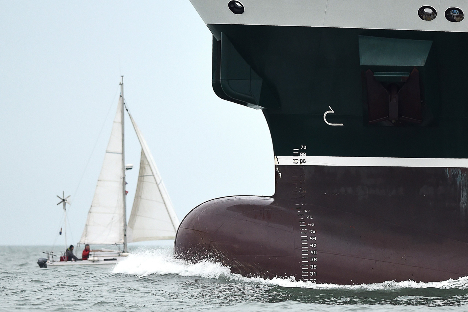 Tourists (rear) on board of a tour boat watch as migrants, who are part of a group intercepted aboard a dinghy off the coast in the Mediterranean sea, stand on a rescue boat (R) upon arriving at a port in Malaga, southern Spain. PHOTO: REUTERS